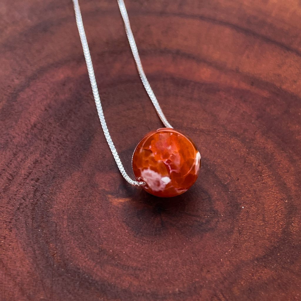 A Ágata de fogo tem uma ligação profunda com a terra, a sua energia calmante causa uma sensação de segurança e proteção e, com esse poder de aterramento, ela dá sustentação em períodos de dificuldades. Mana de coragem e perfeição, nos ajuda a enfrentar os desafios e medos mais profundos com coragem e autoconfiança. Ela entusiasma o fogo interno, a vitalidade, a criatividade e a libido, inspirando a força de ação e estimulando que não tenhamos medo de buscar dar o nosso melhor. Ela inspira que olhemos para dentro, buscando autoconhecimentos e, também, o entendimento dos nossos sentimentos e as raízes dos mesmos. Ela nos auxilia a lidarmos com bloqueios, crenças limitantes e autossabotagem. Ela é um importante amuleto de proteção e auxilia na meditação.